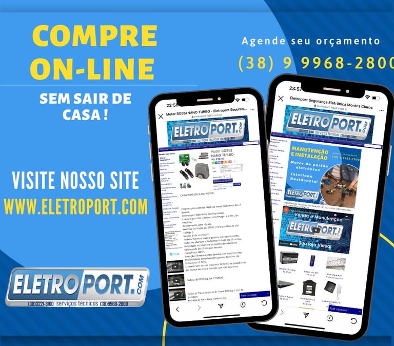 "A mais de 30 anos , somos especialistas em segurança eletrônica e motores para portão eletrônico. Instalação de Motor para Portão eletrônico Manutenção de Motor para Portão eletrônico. Instalação de Interfone Manutenção em interfone Instalação de câmera de segurança IP Wi-Fi Manutenção em sistema de câmera Segurança eletrônica em Montes Claros é aqui na Eletroport Segurança Eletrônica."